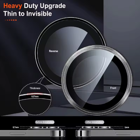 Full coverage, drop protection, anti-scratch, shockproof: The aviation aluminium metal ring and 9H tempered glass camera protector protect your camera lens from damage and scratches with the lovely lens ring.